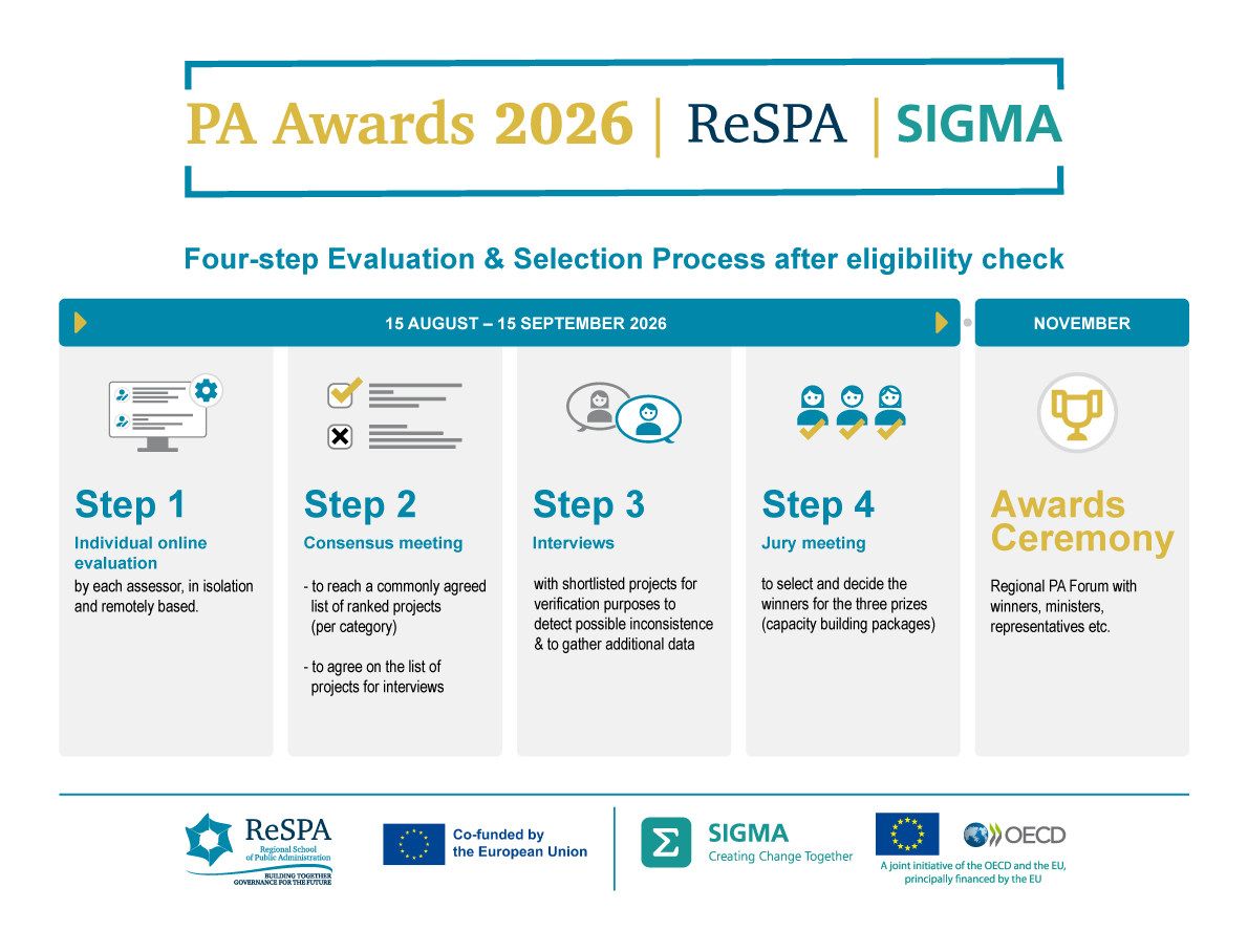 The International Jury is composed of ReSPA representatives and/or ReSPA-selected independent experts and SIGMA representatives and/or experts appointed by them.
